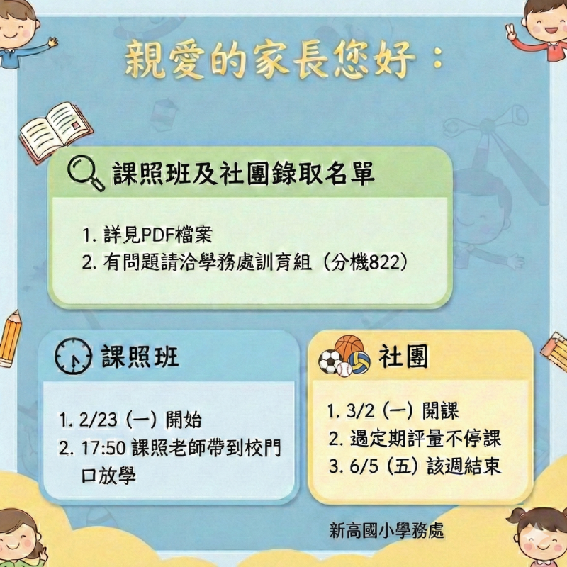 | 標題 | [置頂]公告:114下學期〈課照班暨社團〉錄取名單 |