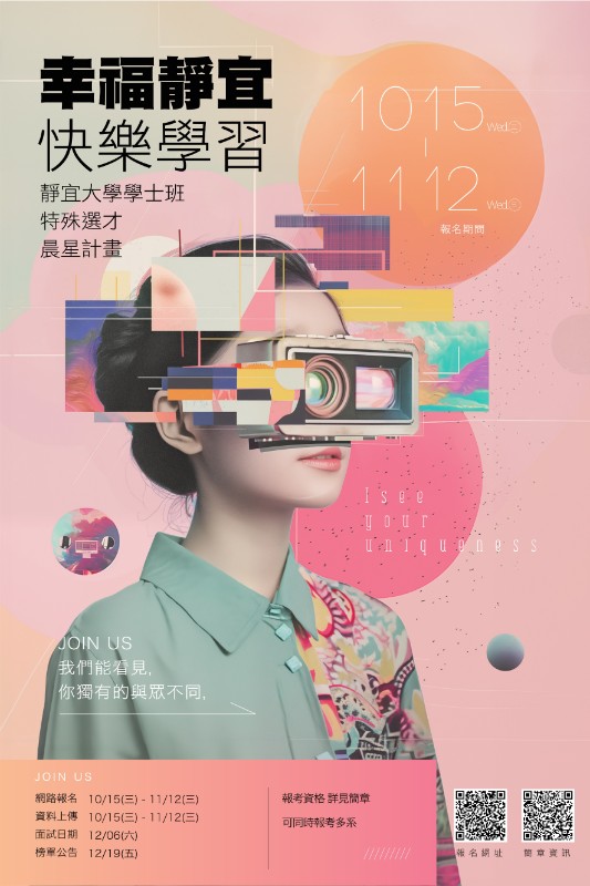 國際學院:寰宇管理學士學位學程、寰宇外語教育學士學位學程、智慧媒體與創新科技應用學士學位學程。 |
