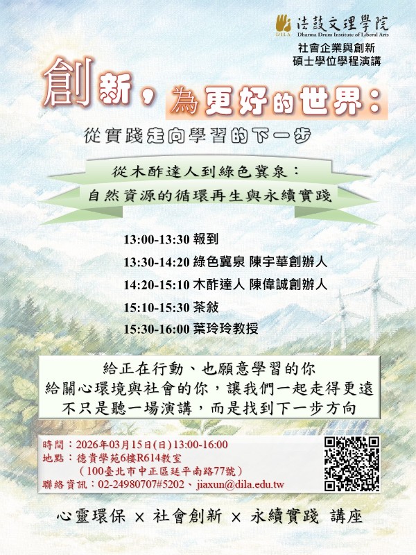 115學年度社會企業與創新碩士學位學程招生報名資訊:https://se.dila.edu.tw/?page_id=1261。 |