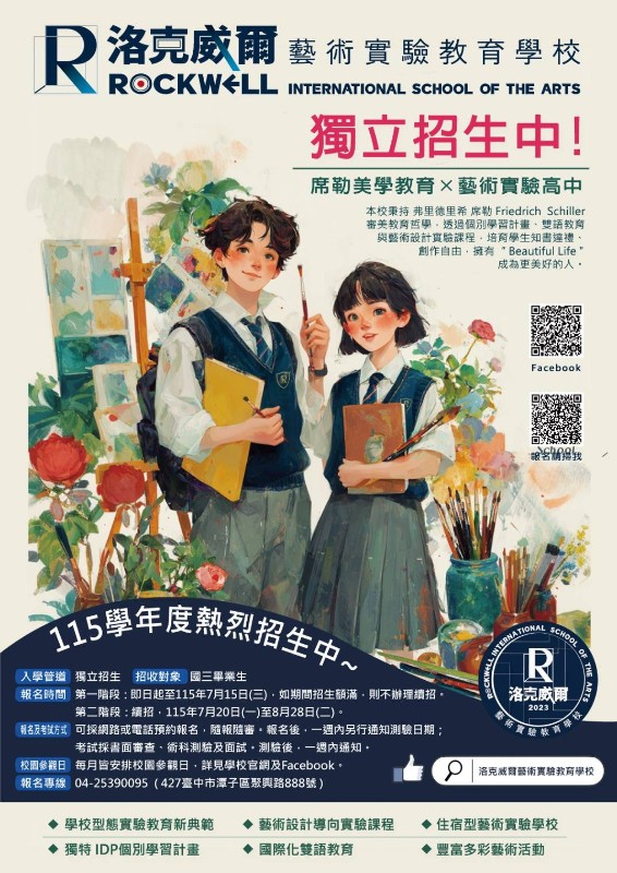臺中市私立洛克威爾藝術實驗教育學校「115學年度入學說明會」活動資訊 |