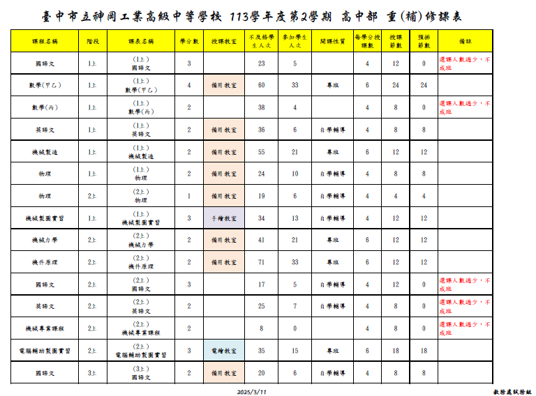 | 標題 | 【重(補)修訊息】(高中部)113-2重(補)修學生名單及課表公告 |