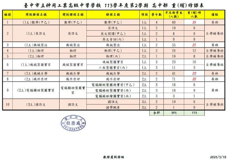 | 標題 | 【重(補)修】113-2高中部重(補)修_開課資訊公告(定案) |