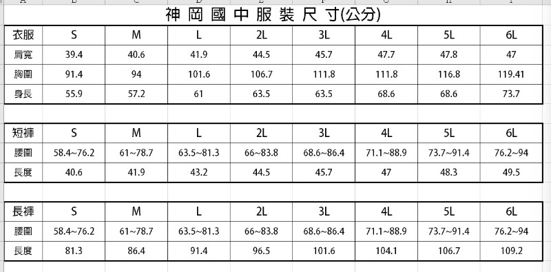 114學年度神岡高工國中部&高中部『服裝規定及國中服裝尺寸說明』