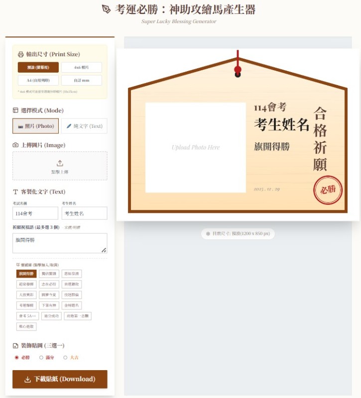 | 標題 | 考運必勝:神助攻繪馬產生器 |