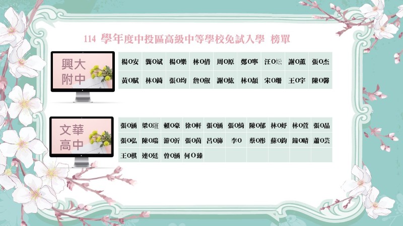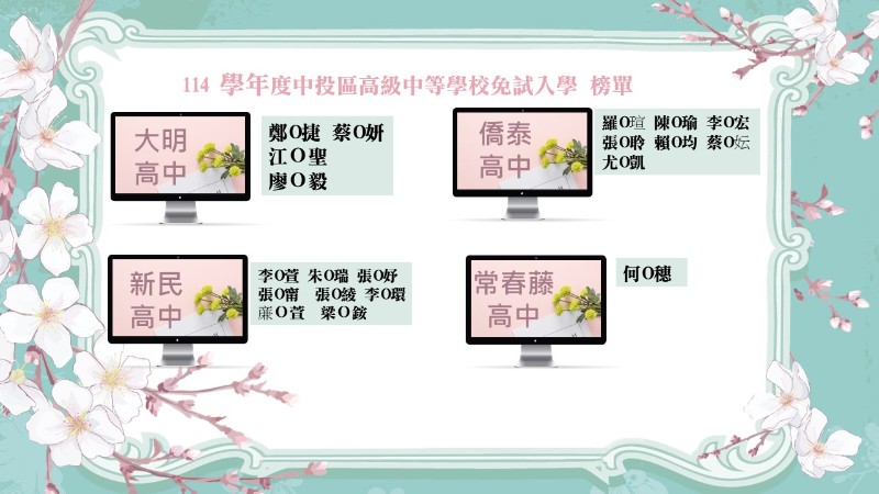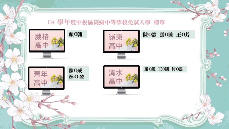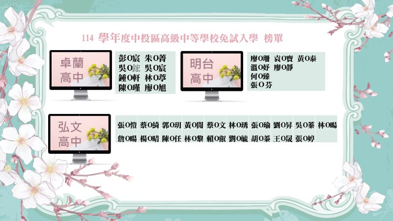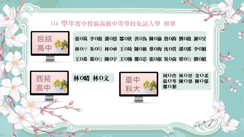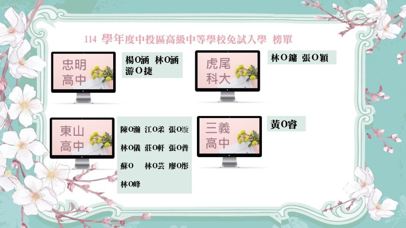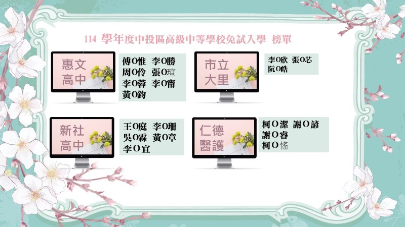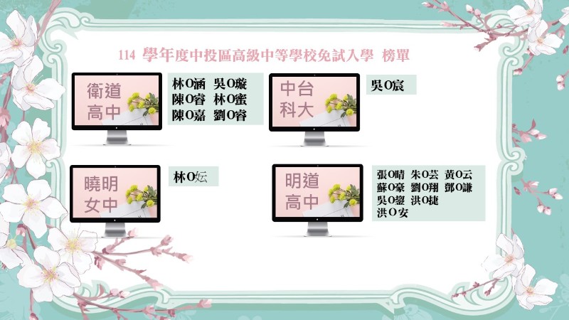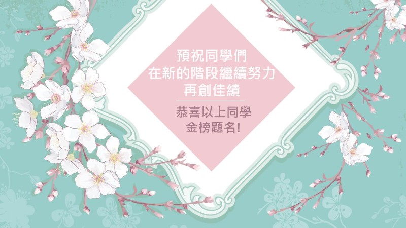 預祝同學們 在新的學習階段繼續努力 再創佳績