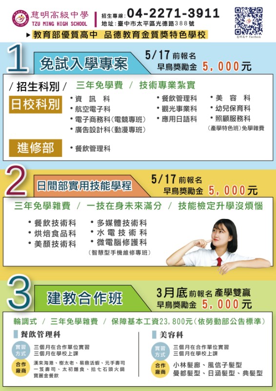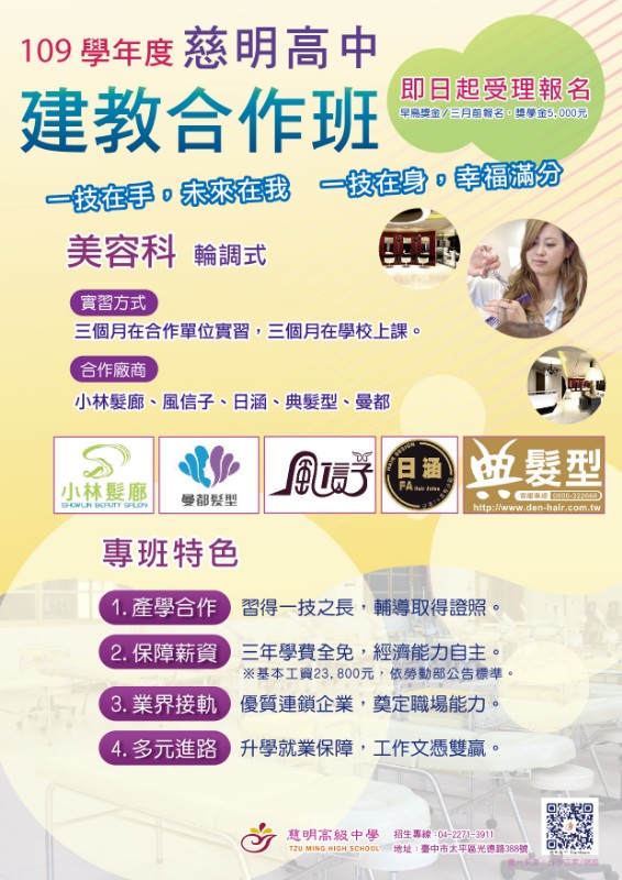 | 標題 | 轉知慈明高中109學年度建教合作班招生資訊 |