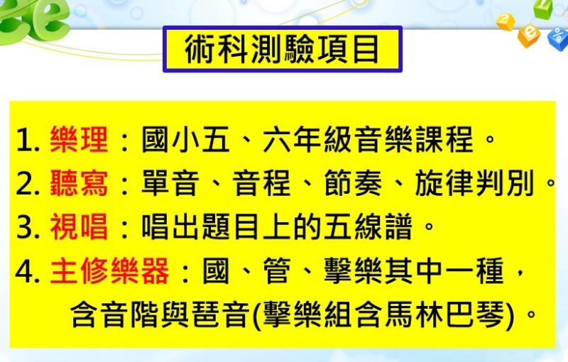 | 標題 | 公告115學年度臺中市立國民中學藝術才能班(音樂班)招生簡章,請查照。 |