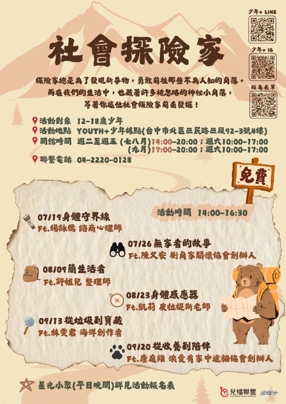 轉知:兒福聯盟「少年+」據點辦理2025年「社會探險家」社會共好主題活動及星光小聚,歡迎學生參加 |