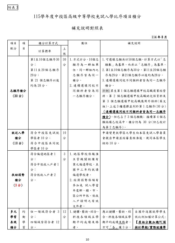 | 標題 | 1141108有修正_轉知:中投區115學年度高級中等學校免試入學作業要點含比序方式,請應屆畢業班學生家長等相關人員知悉。 |