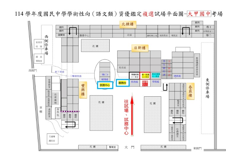 公告114資優學生鑑定複選《大甲國中》試區試場位置圖與入場證號碼分配表