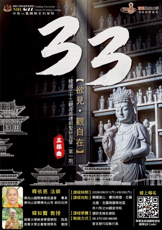 課程地點:韓國釜山、慶尚南道、全羅北道、全羅南道等地區之韓國33觀音道場。 |