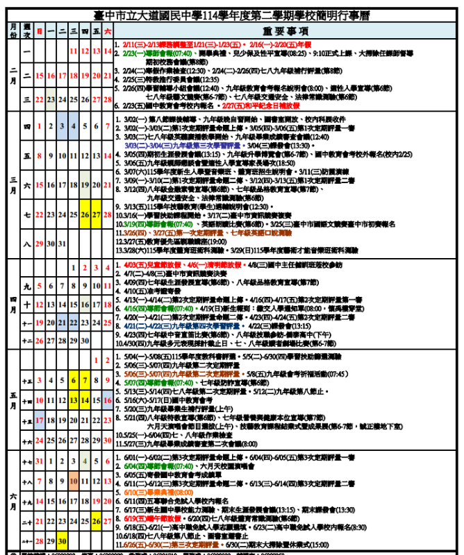 本校114-2簡明行事曆,同仁們可自行下載使用,如有修正另行通知,謝謝。