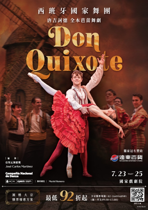 藝文活動為多元藝術的展現,為拓展台灣觀眾的藝文素養與舞蹈藝術之視野,本公司引進與《天鵝湖》並列為最受歡迎的古典芭蕾舞劇之一的《唐吉訶德》,由西班牙最具代表性的「西班牙國家舞團」全本演出。與多數偏向悲劇色彩的故事不同,《唐吉訶德》故事圍繞在唐吉訶德旅途上遇到的一對西班牙戀人的愛情故事,寫實與幻想場景交織出豐富的戲劇層次及充滿節慶的歡快氛圍,加上西班牙國家舞團特有的熱情澎派佛朗明哥風格,是一齣別開生面、熱鬧有趣的國家級芭蕾舞演出!在舞蹈技巧上,《唐吉訶德》也以炫技十足的舞蹈段落與濃厚戲劇張力聞名於世,包括經典大雙人舞中舞者需以高度默契完成連續高難度托舉、旋轉與跳躍,以及女主角獨舞中的「32鞭轉」更是對舞者平衡感、核心力量與心理專注度的極限考驗。誠摯推薦師生前來欣賞,感受既保有古典芭蕾嚴整的結構之美,也流露濃厚地域文化風情的芭蕾舞劇《唐吉訶德》。 |