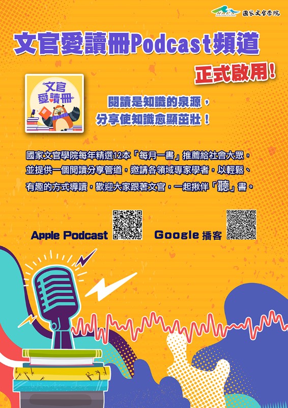 函轉國家文官學院成立「文官愛讀冊」Podcast頻道,請鼓勵 所屬同仁多加利用,請查照。
