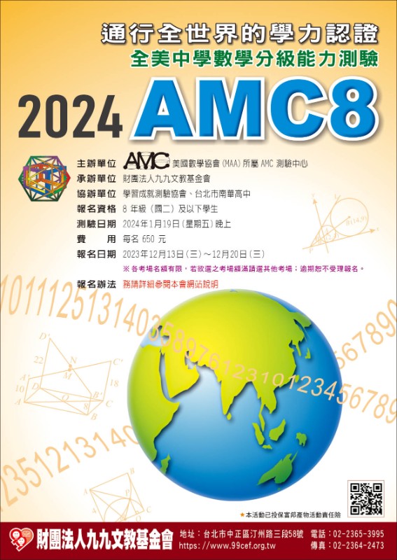美國數學協會(MAA)所屬AMC測驗中心「2024年全美中學數學分級能力測驗AMC8」台灣區測驗考試。