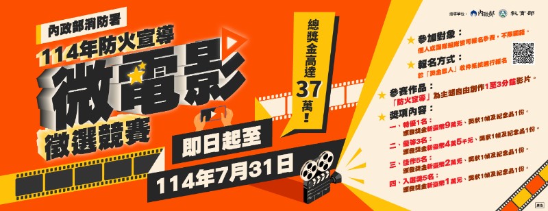 內政部消防署辦理「114年防火宣導微電影徵選競賽活動」