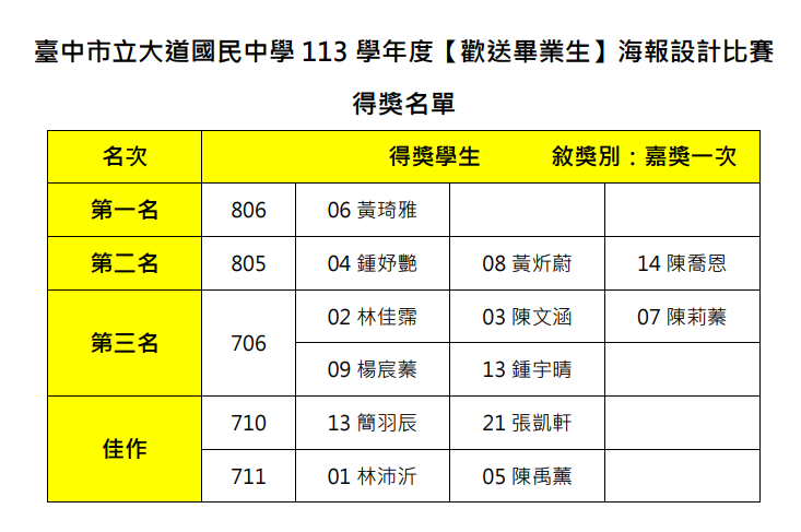 113學年度歡送畢業生海報設計比賽得獎名單公告,恭喜得獎同學!