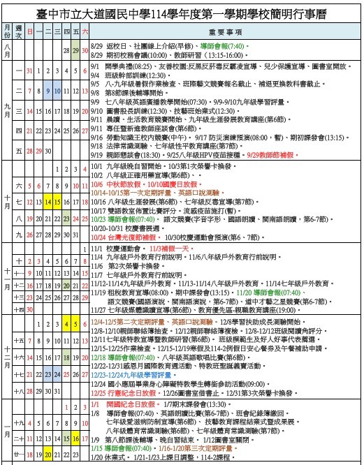 1 14-1簡明行事曆,同仁們可自行下載使用,如有修正另行通知,謝謝。