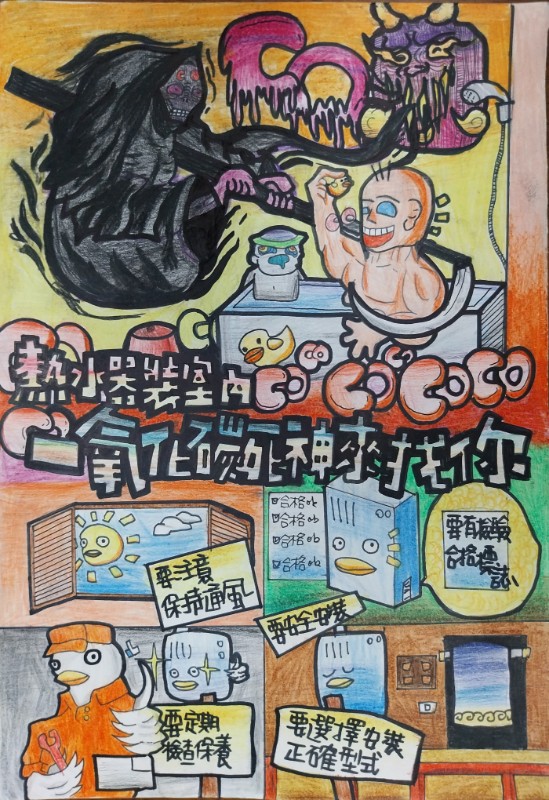 【狂賀】本校同學參加臺中市政府消防局112年宣導防範熱水器一氧化碳中毒青少年繪畫競賽!表現超亮眼!!本校共計13位同學獲獎特優:104趙世荃優等:102林昱蓁、103曹芷涵、201馬依靚佳作:101王佑琳、101楊淳蓁、101廖予甄、102林宇庭、103黃映維、201吳欣紜、201陳柏語、202鍾晨愛、304楊喬羽恭喜以上獲獎同學!感謝楊立蘭老師辛苦指導!