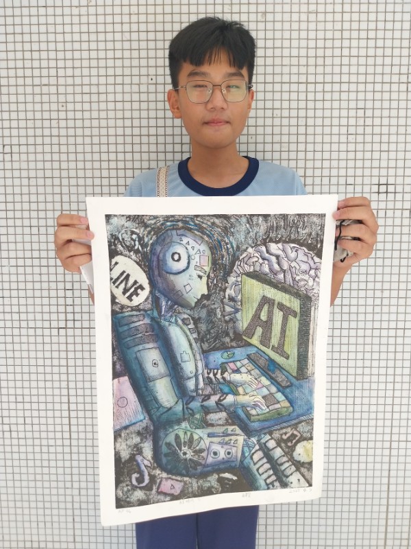 105吳聿昊同學榮獲國中組 自由創作類入選(題目:AI世代)(全台中市共計201件參賽作品僅入選43件)…………………………………………………………………………..