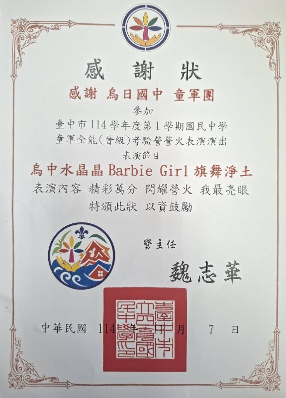 | 標題 | 狂賀!本校童軍團參加臺中市114-1國民中學童軍全能晉級考驗營!表現超亮眼! |