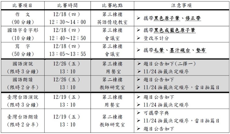| 標題 | ★ 114學年度第1學期校內語文競賽 |