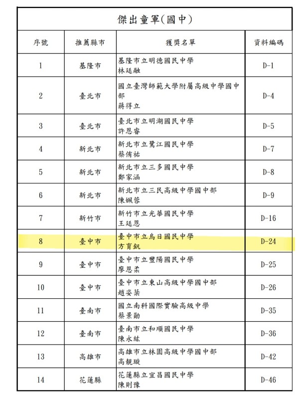 | 訊息分類 | 榮譽榜 |