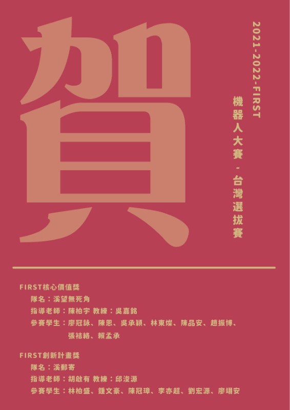 | 標題 | 本校學生參加「2021-2022-FIRST機器人大賽-台灣選拔賽」榮獲佳績 |