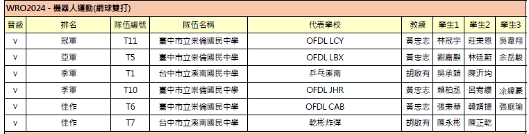2024 WRO國際奧林匹亞機器人大賽台中市校際盃網球雙打組 佳作 陳永彬 陳正乾等2員