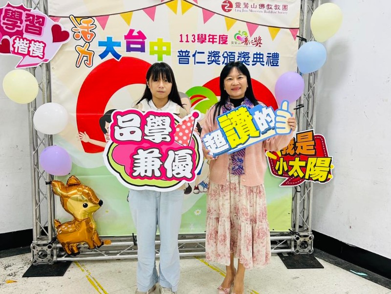 賀!302 柯芊羽榮獲【第22屆靈鷲山台中區普仁獎】! 本獎項是獎勵展現「五德」生活態度的學生,成為普仁小太陽!