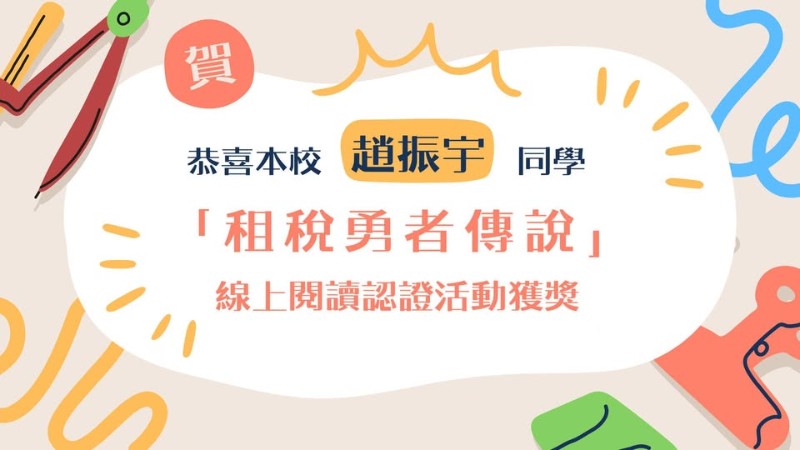 恭喜!趙振宇 參加113 年度「租稅勇者傳說」線上閱讀認證活動 勇奪佳績!