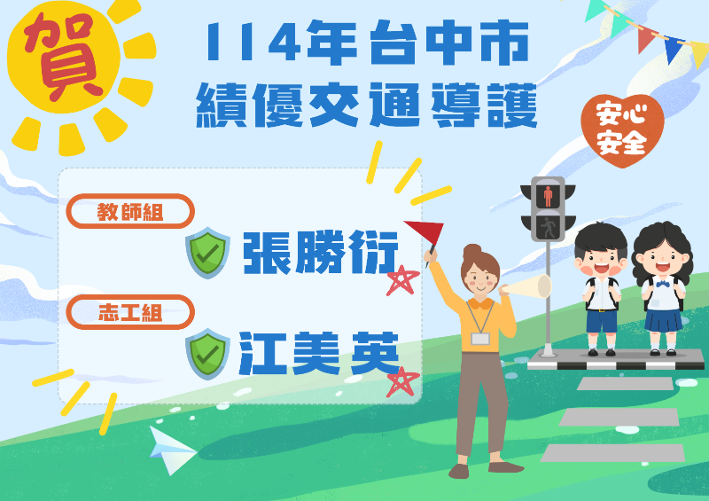 恭喜!張勝衍主任、江美英志工榮獲114年台中市績優交通導護!