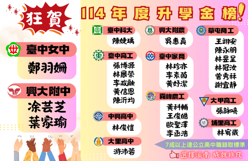 狂賀!114年度升學金榜出爐,7成以上達公立高中職錄取標準!