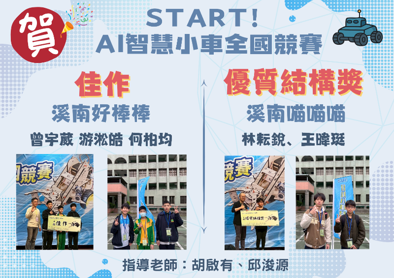 賀!本校學生參加「START!AI智慧小車全國競賽」獲獎!