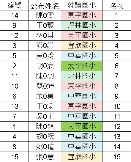 太平菁英挑戰賽名次公告(恭喜獲獎同學,預計新學年開學後升旗頒獎)