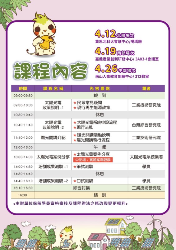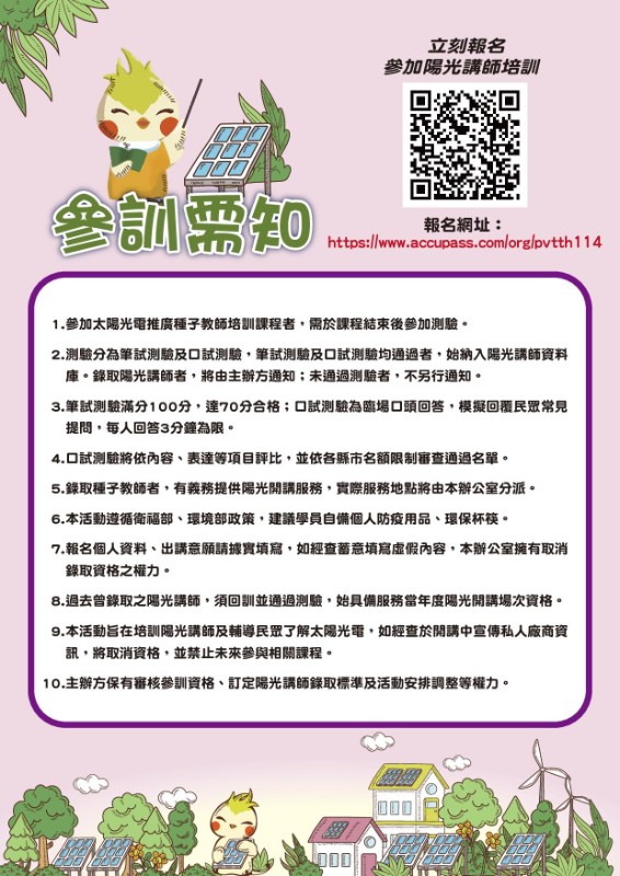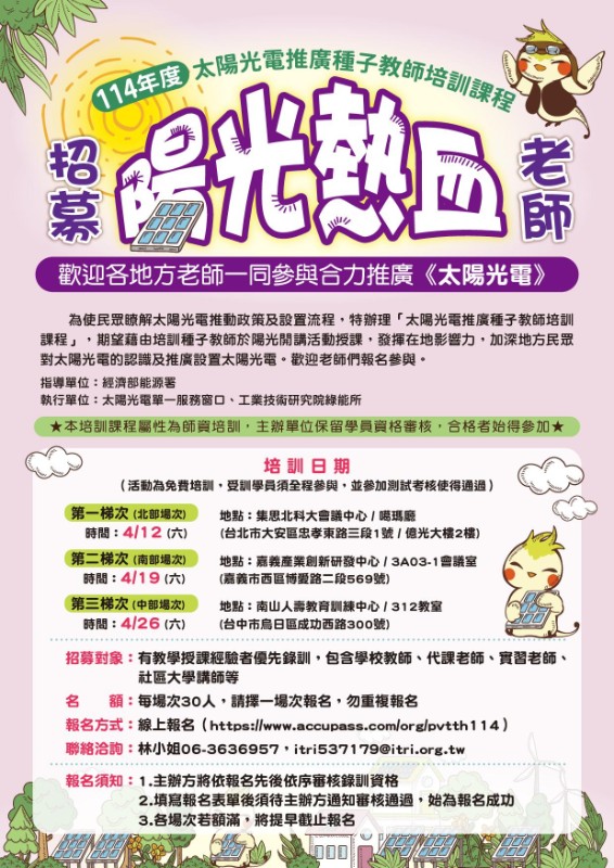 財團法人工業技術研究院辦理「114年度太陽光電推廣種子教師培訓課程」