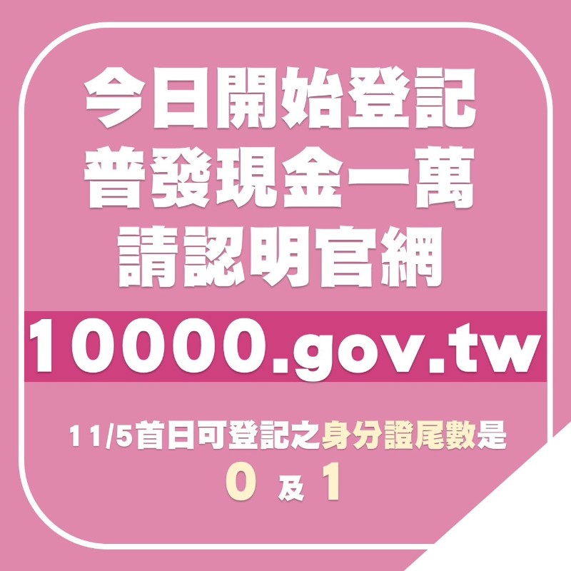 | 標題 | 轉知:【普發現金】來啦 請認明:官方網址只有一個 ➡️ https://10000.gov.tw/ |