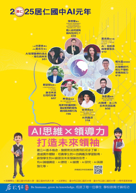 居仁國民中辦理114年臺中市立居仁國民中學2025年-AI元年-AI論壇講座主體海報及3月份講座