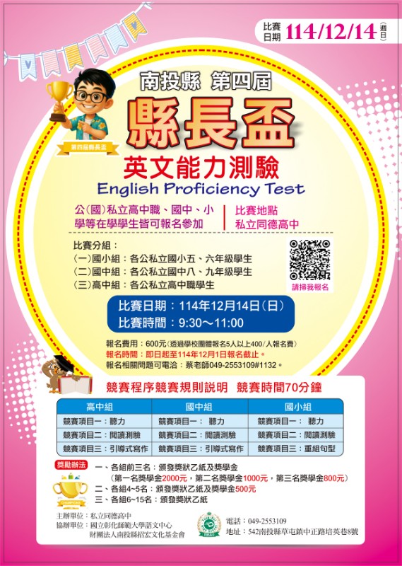 南投縣第四屆縣長盃中小學生英文能力比賽計畫