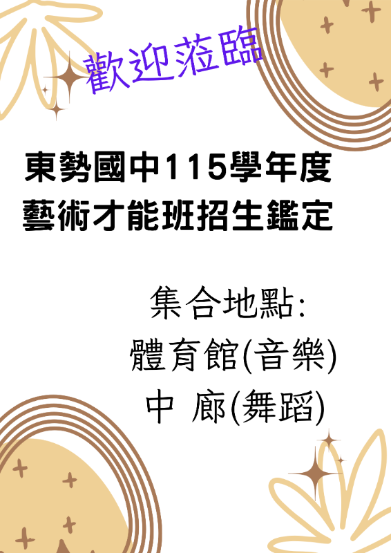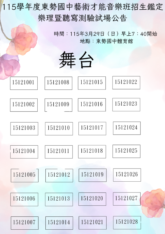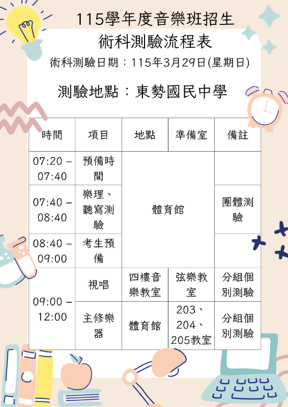 115學年度臺中市立東勢國民中學藝術才能音樂班學生招生暨鑑定試場注意事項公告