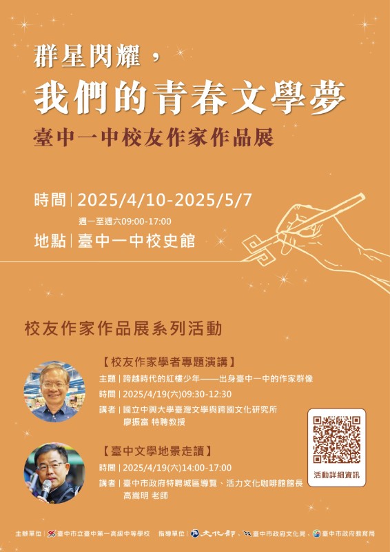 2025/04/07 轉知台中一中圖書館辦理「群星閃耀,我們的青春文學夢:臺中一中校友作家作品展」系列文學推廣活動相關資訊