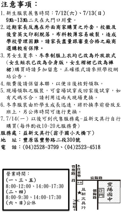2025/06/18 公告本校114學年度新生校服套量及學號繡製說明