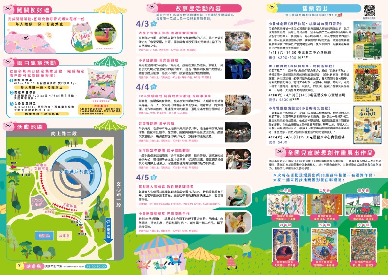 一、依據本府文化局115年3月11日中市文藝字第1150004503號函辦理。 二、活動時間:115年4月3日(星期五)至4月5日(星期日)下午3時至8時。 三、活動地點:本市文心森林公園。 |