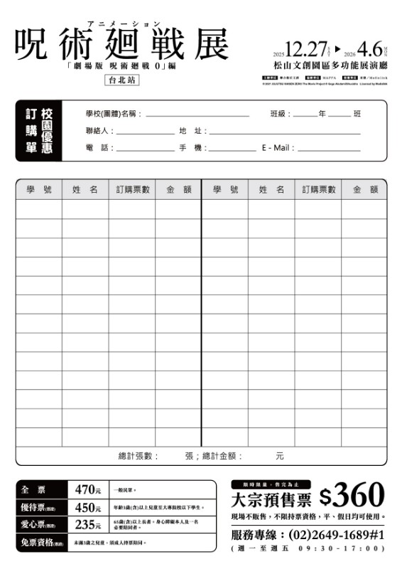 轉知聯合數位文化「咒術迴戰展《劇場版 咒術迴戰 0》篇」資訊