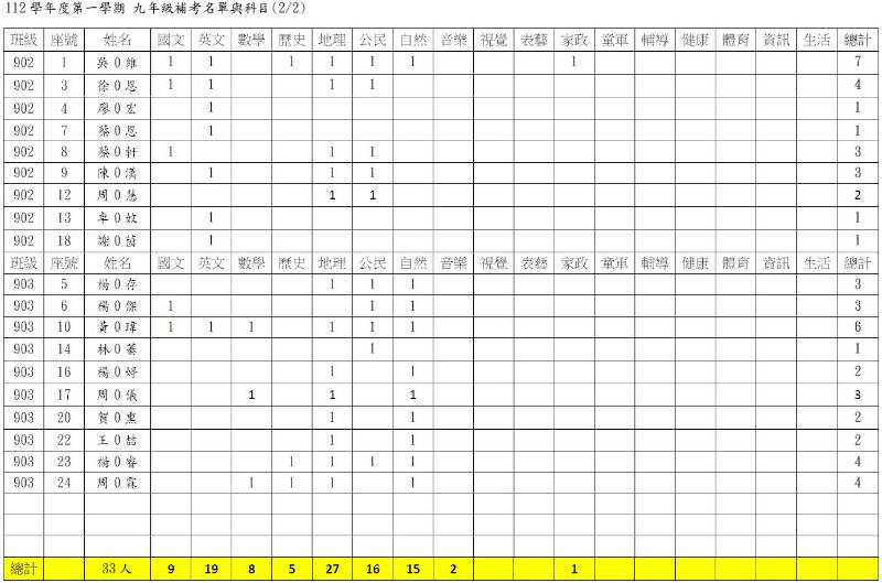 | 標題 | 公告112-1補考日程與需補考名單,時間為2/19~2/23,請同學注意考試時間! |