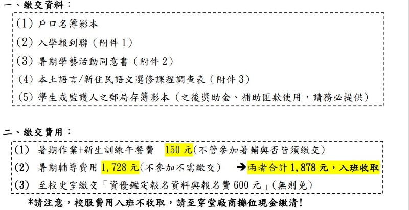 三、新生暑期重要行事曆: