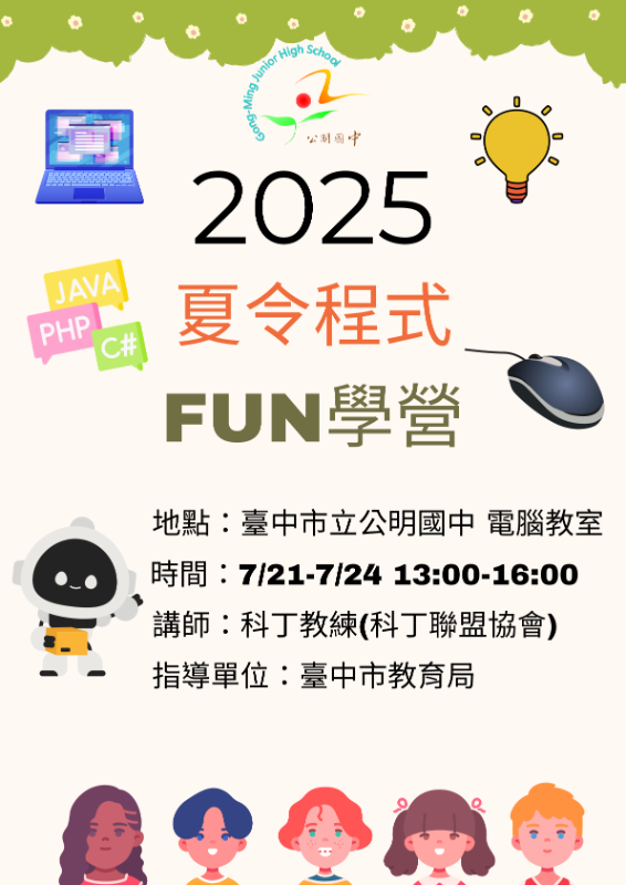 2025年夏令程式FUN學營(公明國中場次)7/21~7/24(下午一點到四點)錄取名單及相關事項