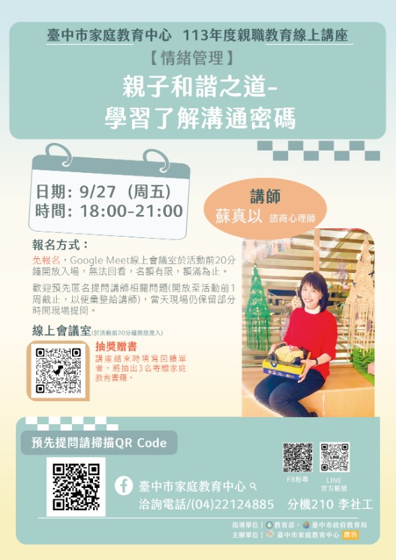 線上親職講座第四場次:【情緒管理】親子和諧之道-學習了解溝通密碼 |