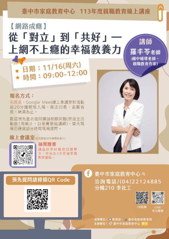 線上親職講座第五場次:【網路成癮】從「對立」到「共好」─上網不上癮的幸福教養力 |