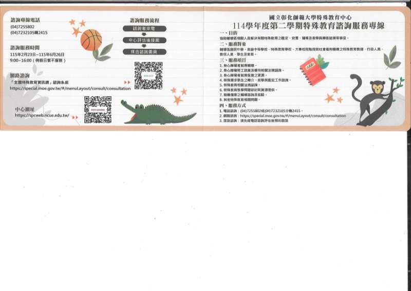 國立彰化師範大學特殊教育中心114學年度第2學期特殊教育諮詢專線.jpg